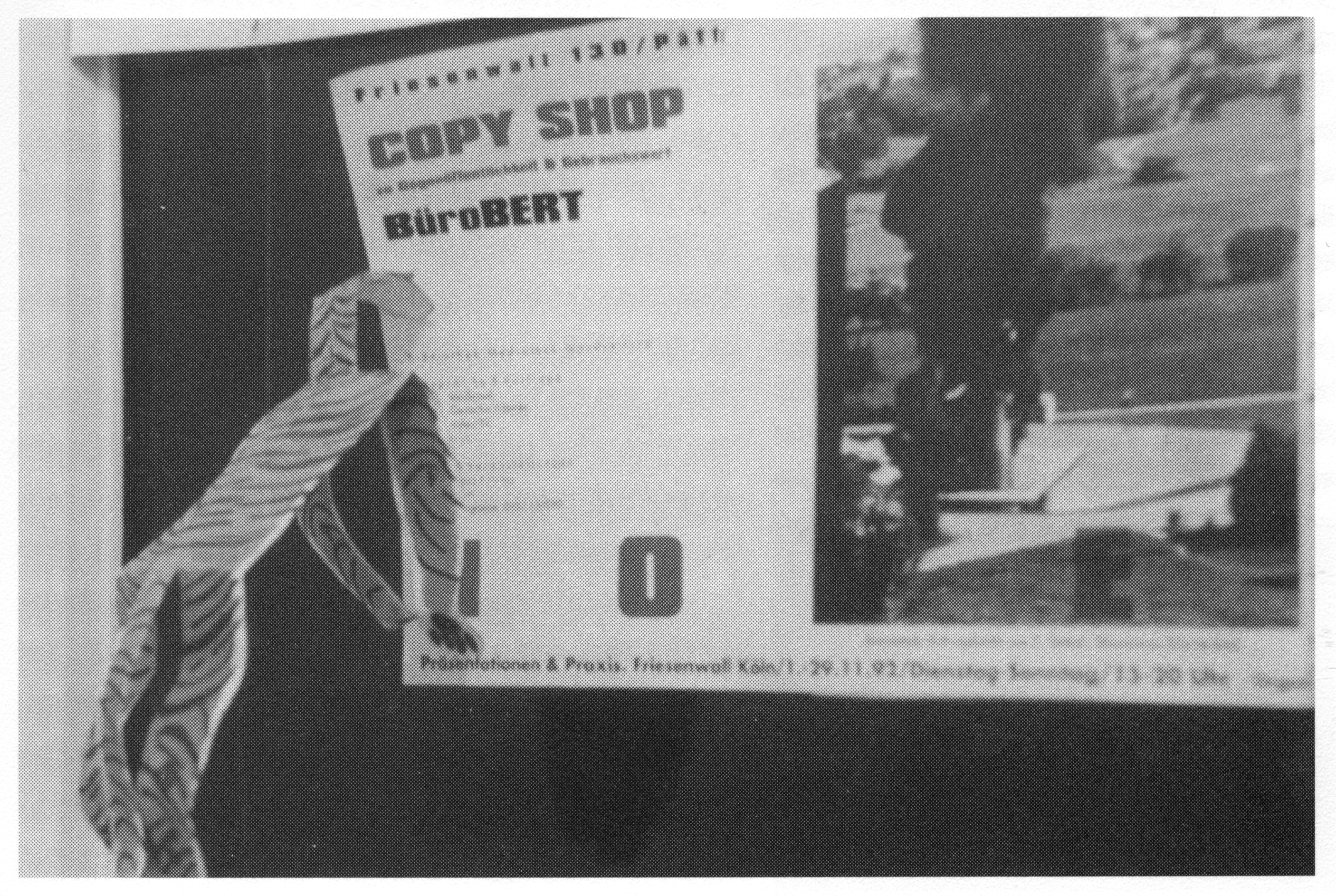 Copyshop war ein temporärer Projektraum in Köln, der im November 1992 während des Rahmenprogramms der Unfair 92 – einem Gegenprogram zur kommerziellen Art Cologne — von der Gruppe BüroBert (Renate Lorenz, Jochen Becker) bespielt wurde. Der im Nachgang dazu erschienene Reader stellt ca. 17 Projekten aus künstlerischen und aktivistischen Bereichen vor, und artikuliert in verschiedenen Essays, Gesprächen Überlegungen zu künstlerischer Praxis und politischer Öffentlichkeit sowie gegenöffentlichen Strategien und Taktiken. Der Reader umfasst auch eine kommentierte Bibliographie von Autor:innen des Buchs.